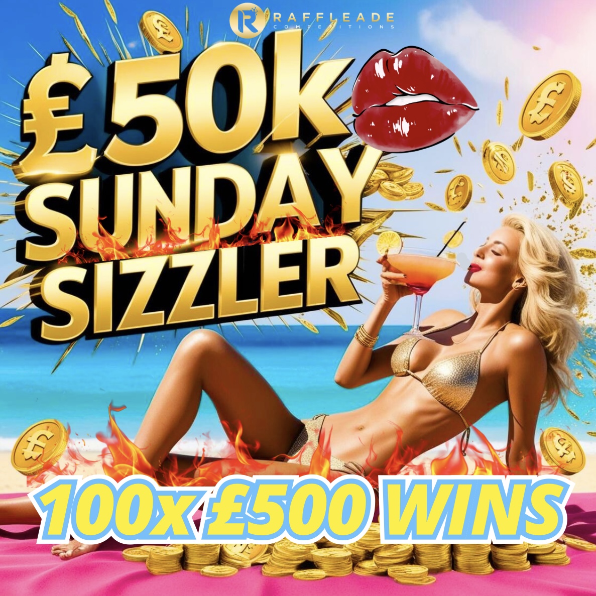 £50,000 SUNDAY SIZZLER 100 CHANCES TO WIN £500!