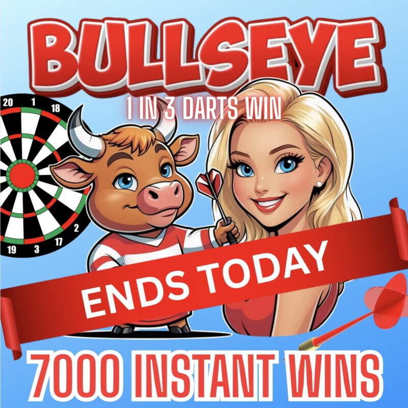 In our NEW Darts themed game 1 in 3 darts WIN! That’s some incredible odds! We have a whipping 7000 instant wins meaning SO MANY CHANCES TO WIN!